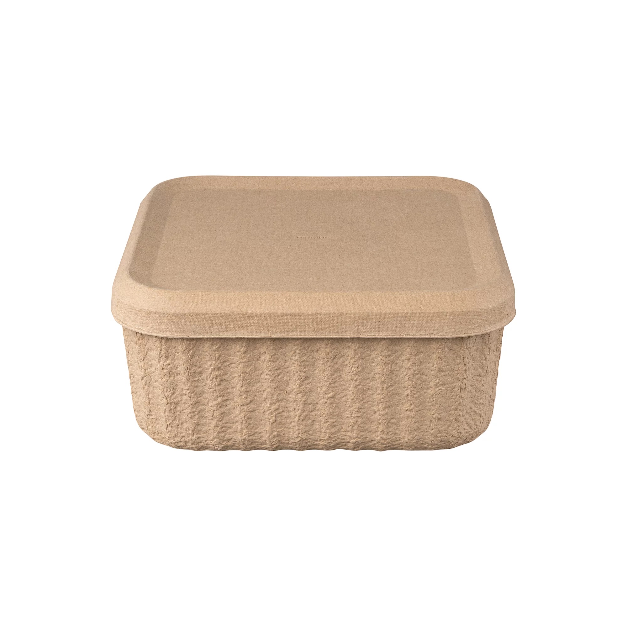 Die REDO Aufbewahrungsboxen bestehen zu 100 % aus recycelbarem Papierzellstoff und sind leicht, stabil und stabelbar. Die verschiedenen Größen bieten Stauraum, sorgen für Ordnung und fügen sich dank ihrer besonderen und dennoch dezenten Optik ideal in verschiedene Umgebungen ein. Die Sets in drei Größen bestehen aus je zwei Boxen mit Deckel. Der Designer Robin Scholtysik ist bekannt für sein Interesse an nachhaltigen Materialien und unkonventionellen Herstellungsverfahren. Zur Herstellung werden Kartonfabrikabfälle gesammelt, mit Wasser vermischt und die daraus entstandene Zellstoffmischung mithilfe eines Vakuums in Form gebracht und anschließend unter Wärme getrocknet. Die Formen härten aus und werden zu haltbaren und nachhaltigen Aufbewahrungslösungen.