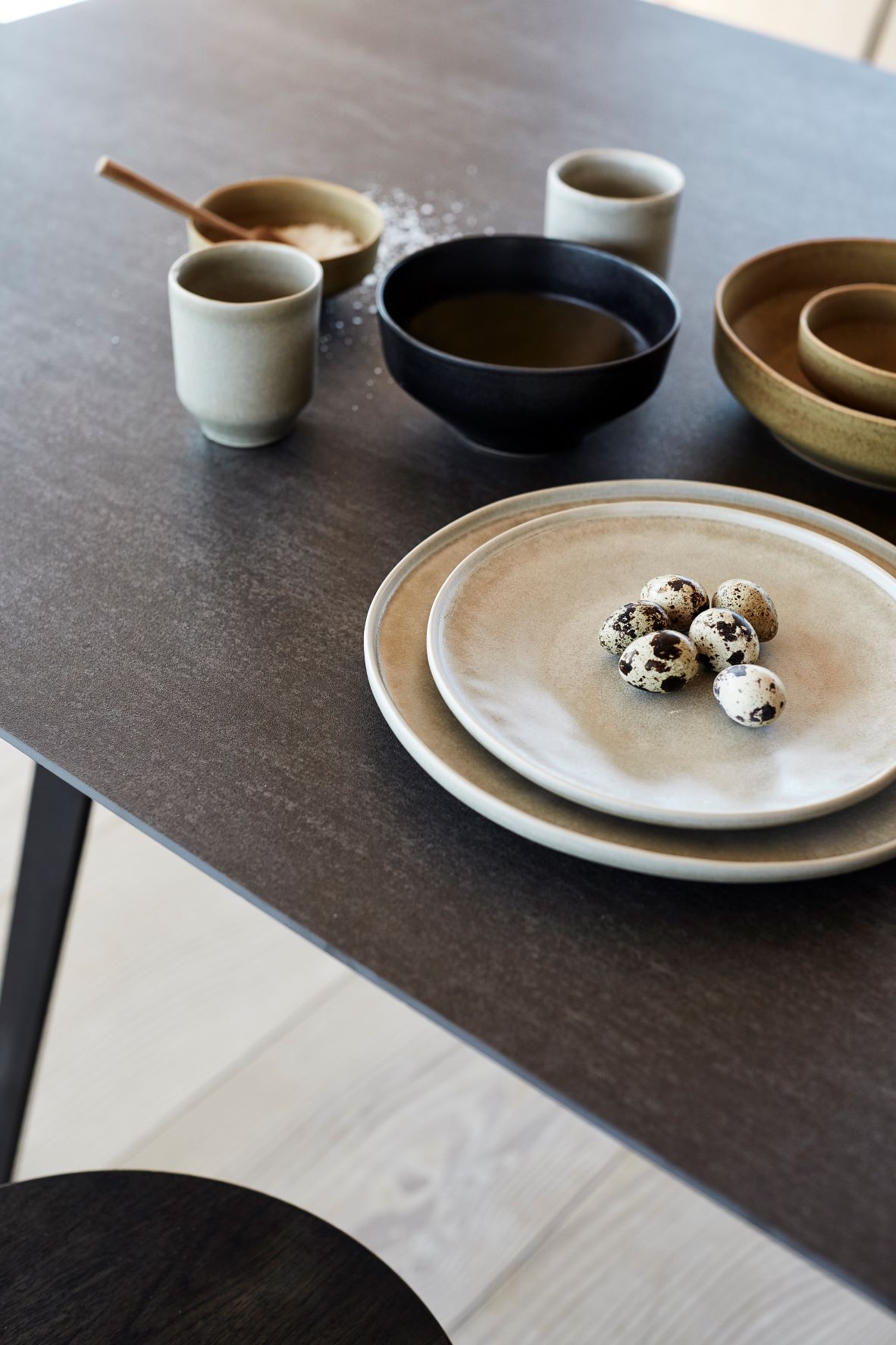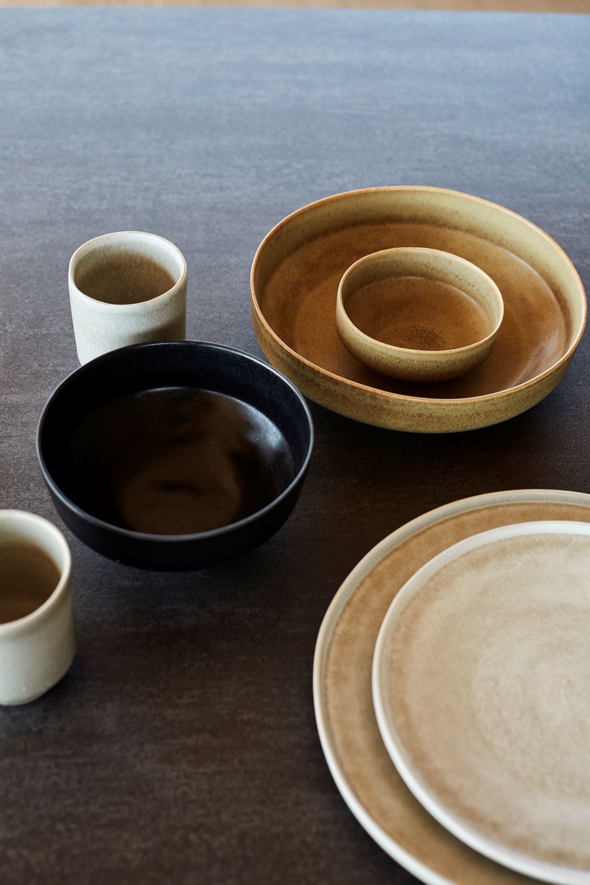 Hinweis: Das Steinzeug wird mit einer reaktiven Glasur behandelt, die jedem Stück einen einzigartigen Charakter verleiht. Bitte beachte, dass es bei der schwarzen und sandfarbenen Ceto-Variante zu Farbabweichungen kommen kann. Das Produkt ist backofen-, mikrowellen- und spülmaschinengeeignet. Beim Gebrauch können Schnittspuren auftreten.