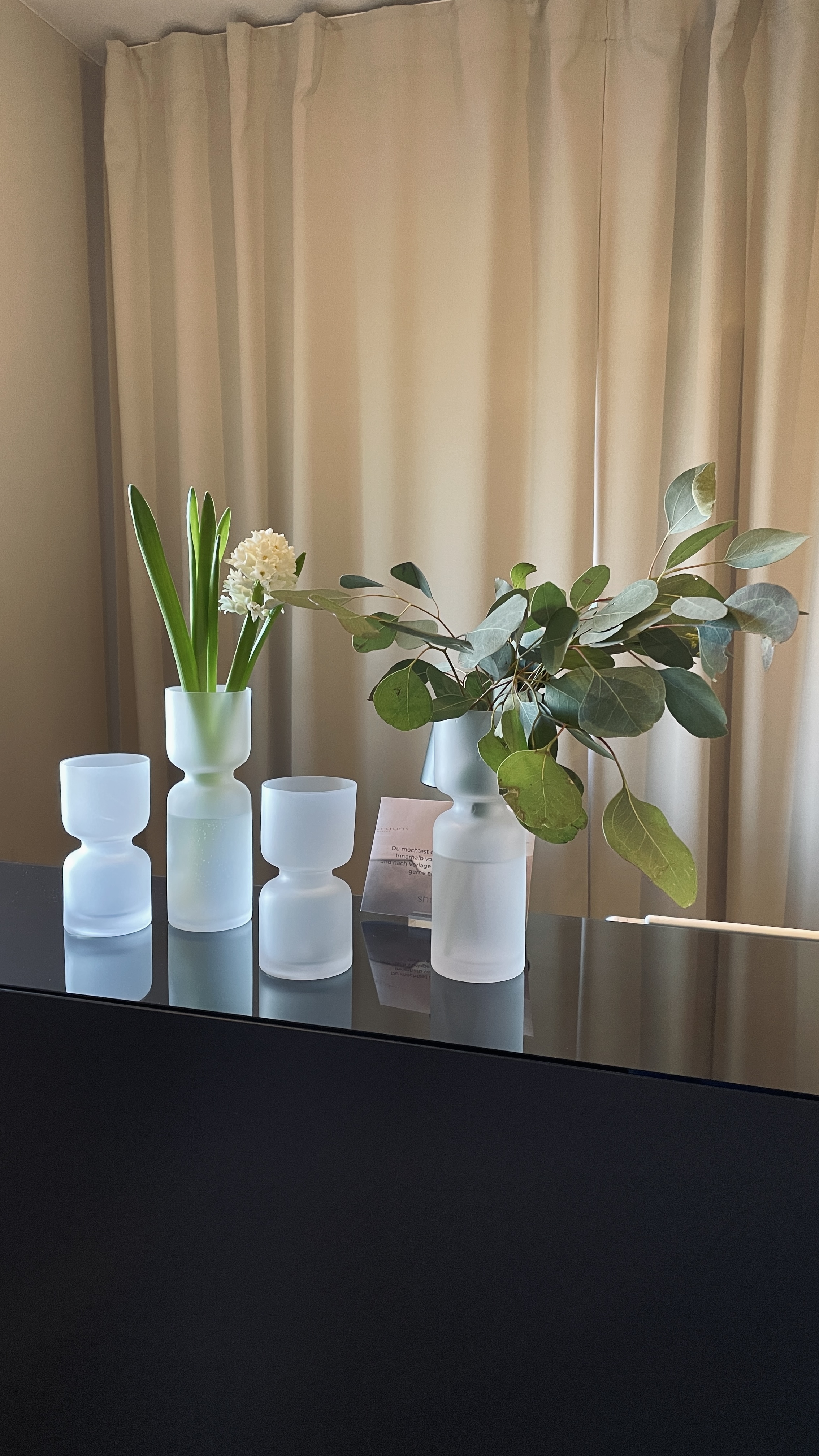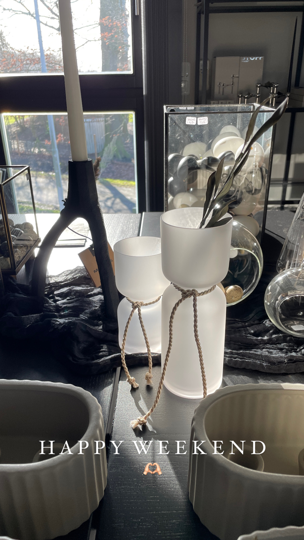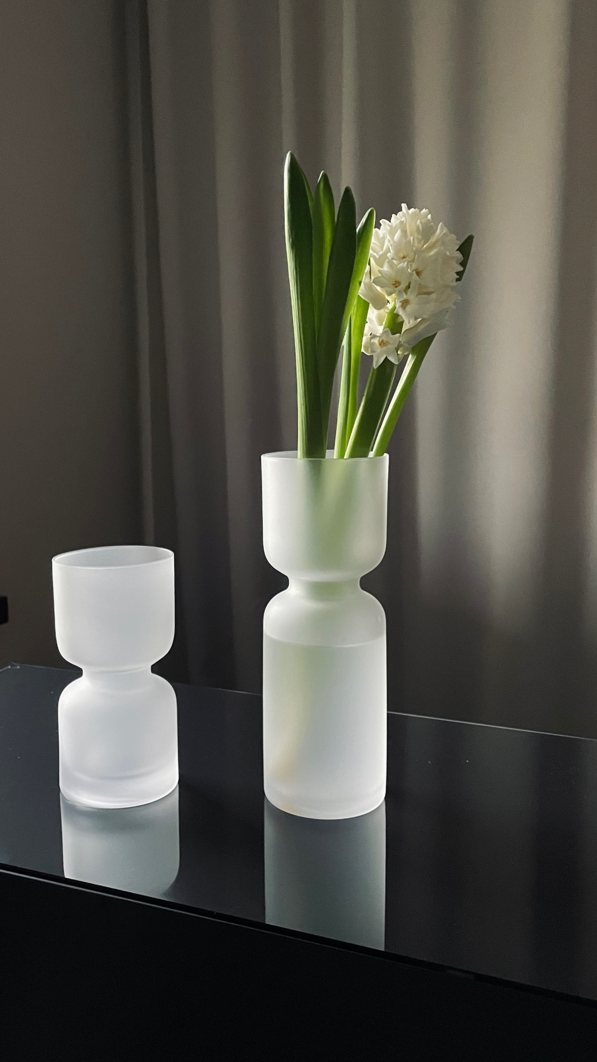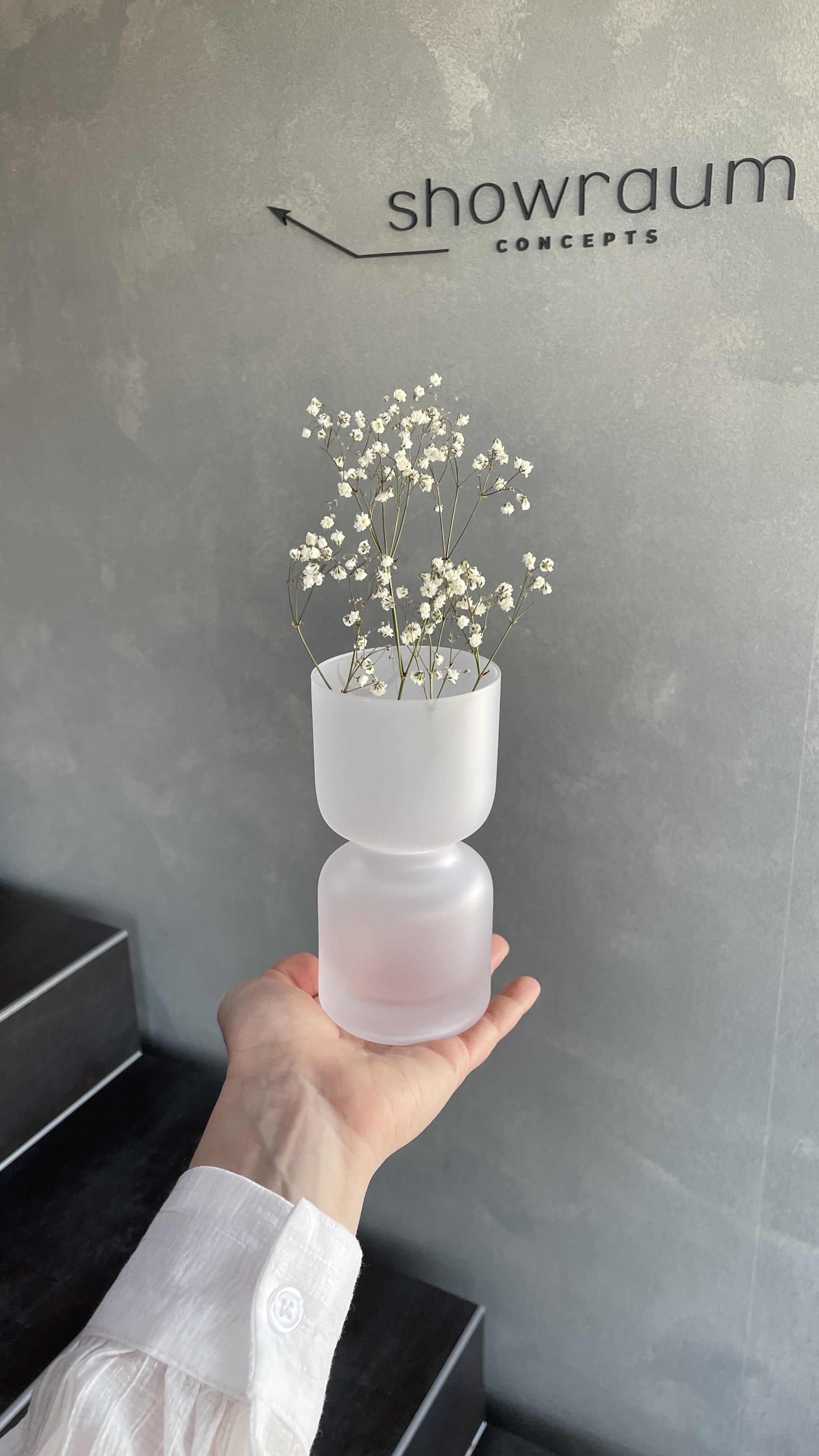 Die Glasvase wirkt besonders gut in Kombination mit der größeren Variante (Artikelnummer SC10347) und beide können auch mit einem Teelicht verwendet werden.
