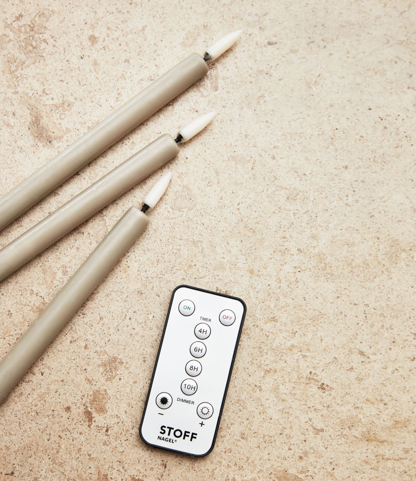 Hinweis: Bei Verwendung der OFF-Taste auf der Fernbedienung wird das LED-Licht auf Standby gestellt. Im Stand-by-Modus verbrauchen die Kerzen noch ein wenig Batterie. Wenn Sie das Licht vollständig ausschalten möchten, um die Lebensdauer der Batterien zu verlängern, schalten Sie das Licht aus, indem Sie die Unterseite locker drehen. Um das beste Erlebnis zu erzielen, empfehlen wir, immer unsere STOFF-Batterien für die LED-Kerzen zu verwenden.