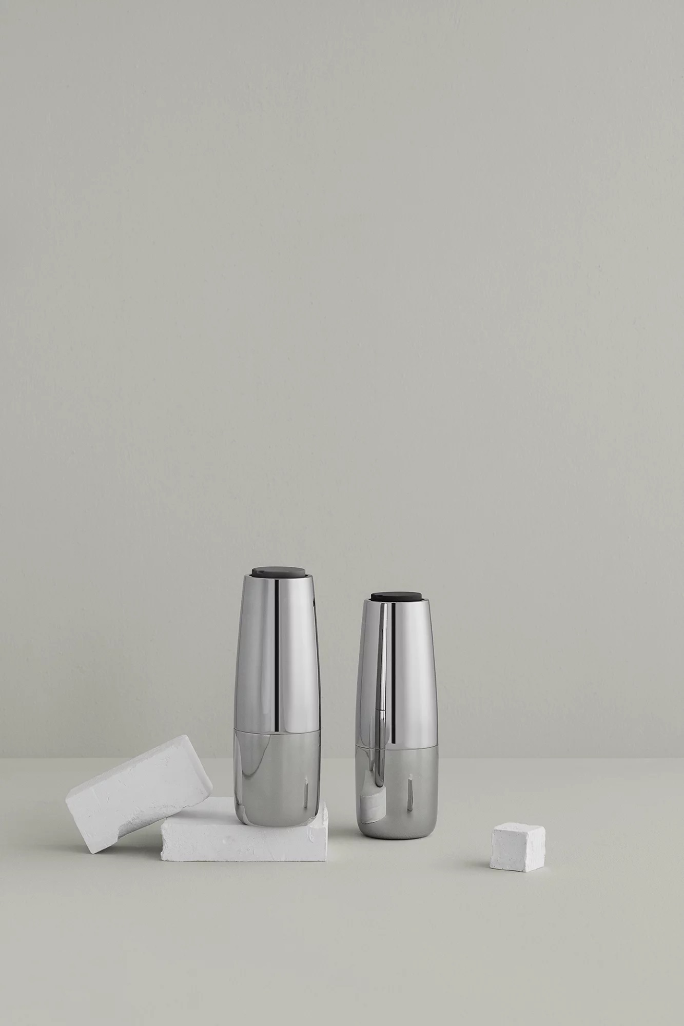 Eine Prise Style bitte! Die Salz- und Pfeffermühle SALPI aus poliertem Edelstahl hat genau die richtige Würze für ein funktionelles Design. Dabei setzen die Einstellrädchen in zwei verschiedenen Grautönen farbige Akzente auf dem Tisch. Dank des Steckmechanismus lassen sich die Behälter öffnen und befüllen. Der Mahlgrad kann von sehr fein bis grob eingestellt werden.