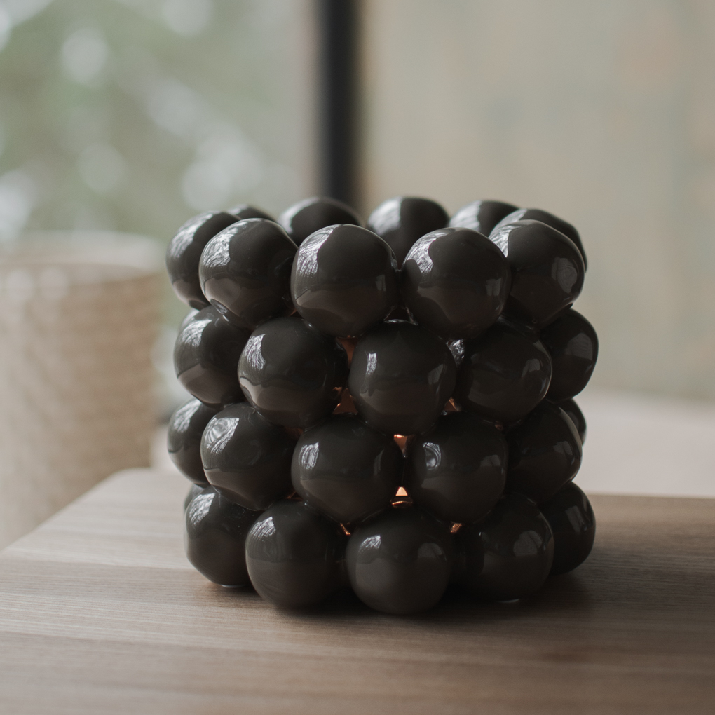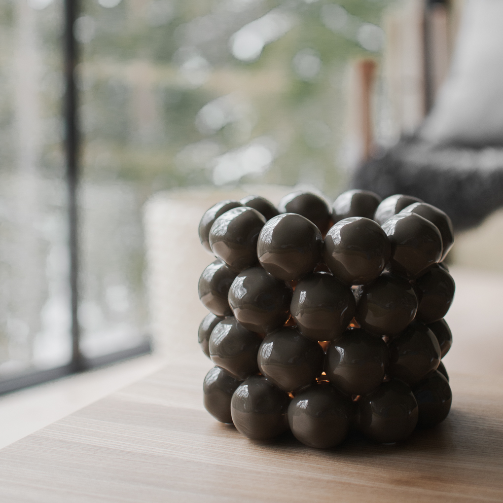 Dieses besondere Windlicht, entworfen von Halina Fritsch, erzeugt ein tanzendes Lichtspiel und soll an kleine Schneebälle erinnern.